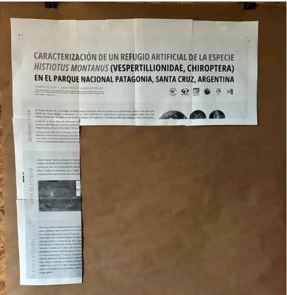 Te entregaremos un sobre con su impresión en el momento en que te acredites en el mostrador en El Calafate. El día en que tengas que exponer el póster, deberás llevar tu sobre con las 16 páginas impresas que lo componen y se te facilitará cinta de papel para que puedas armarlo como un collage sobre papel craft y desarmar (con mucho cuidado, sin dañar el papel base) al finalizar la sesión.